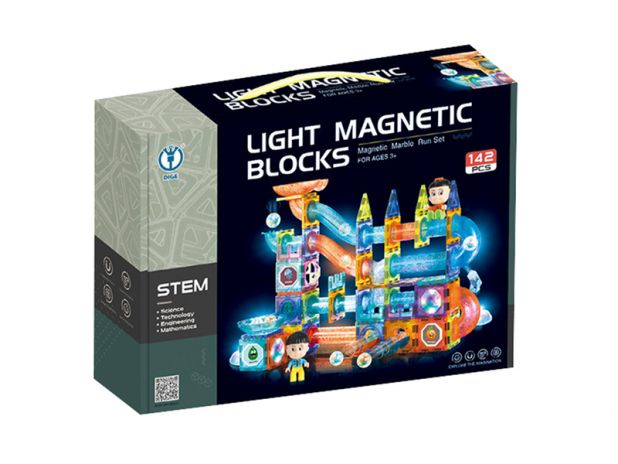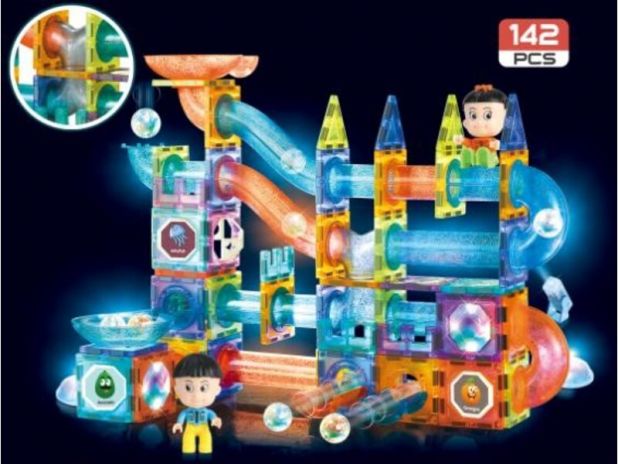 Klocki Magnetyczne Świecące Tor Kulkowy LED 142 Elementy - 2305